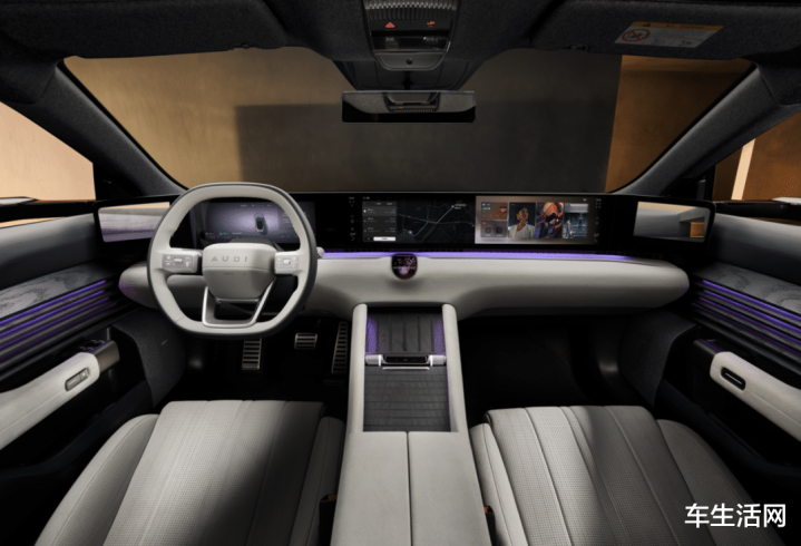 当然对于一辆奥迪来说,灯光肯定是一大亮点,车头的环形星钻光幕有“呼吸感”,内饰的30色氛围灯是“见光不见灯”的设计,坐进去像裹在自然光影里,豪华感挺足。